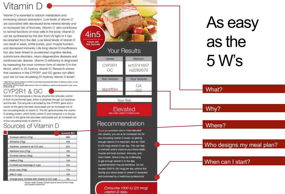 Using genetic testing to determine why individuals respond differently to the same foods, beverages and supplements they consume.